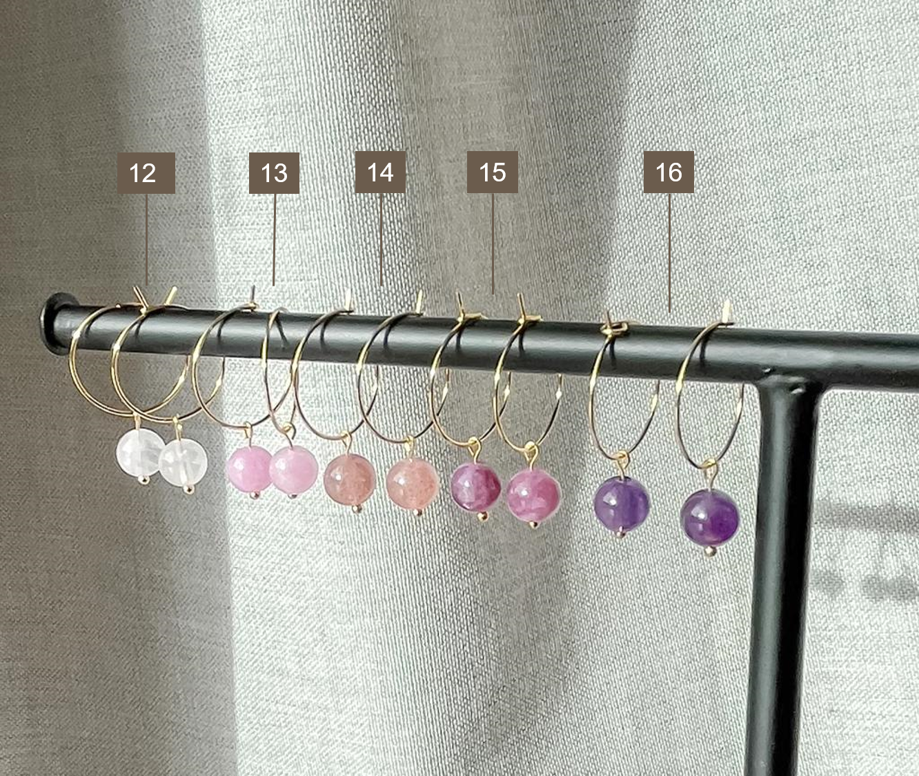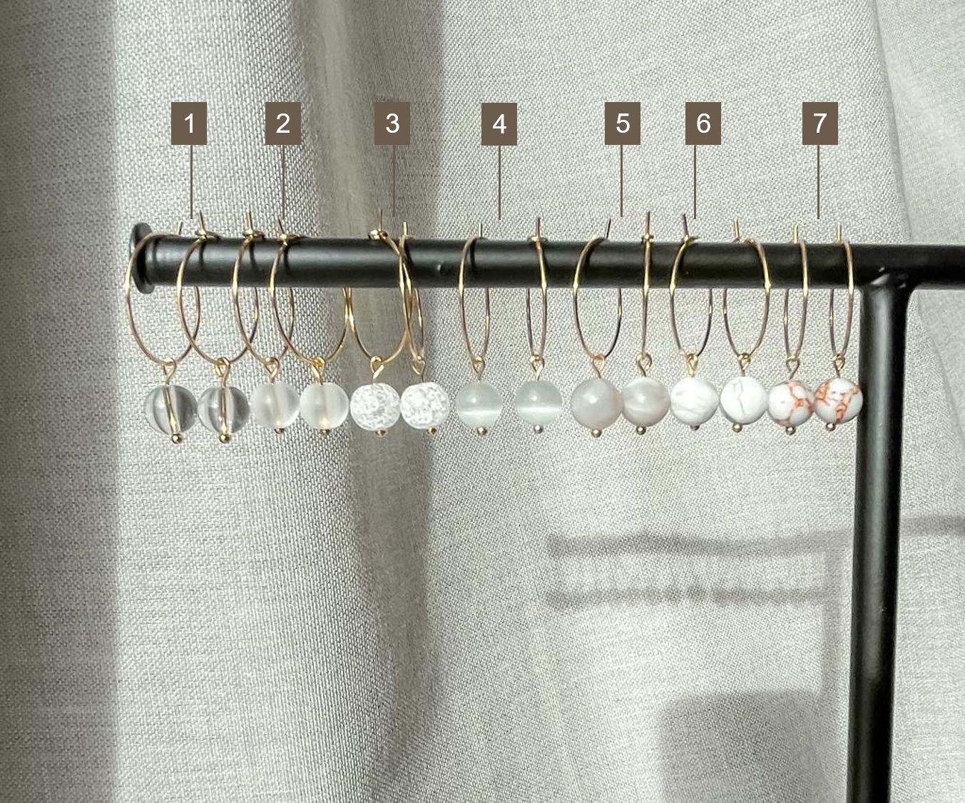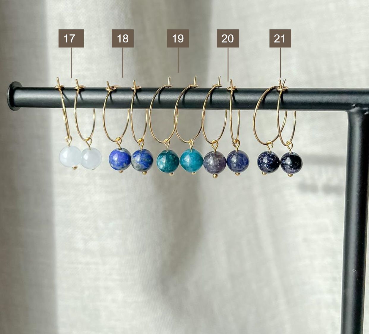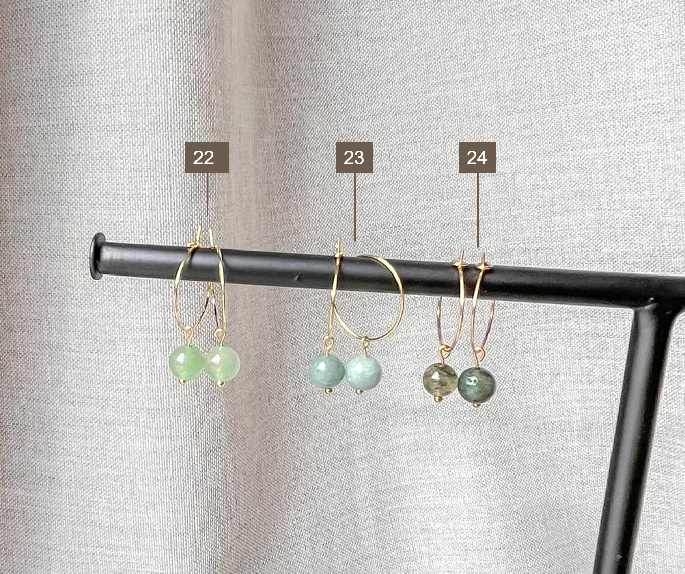 Elk juweel is handgemaakt in ons atelier. Bovendien zijn er natuurlijke materialen gebruikt. Vandaar kan elke oorbel lichtjes verschillen van de foto.