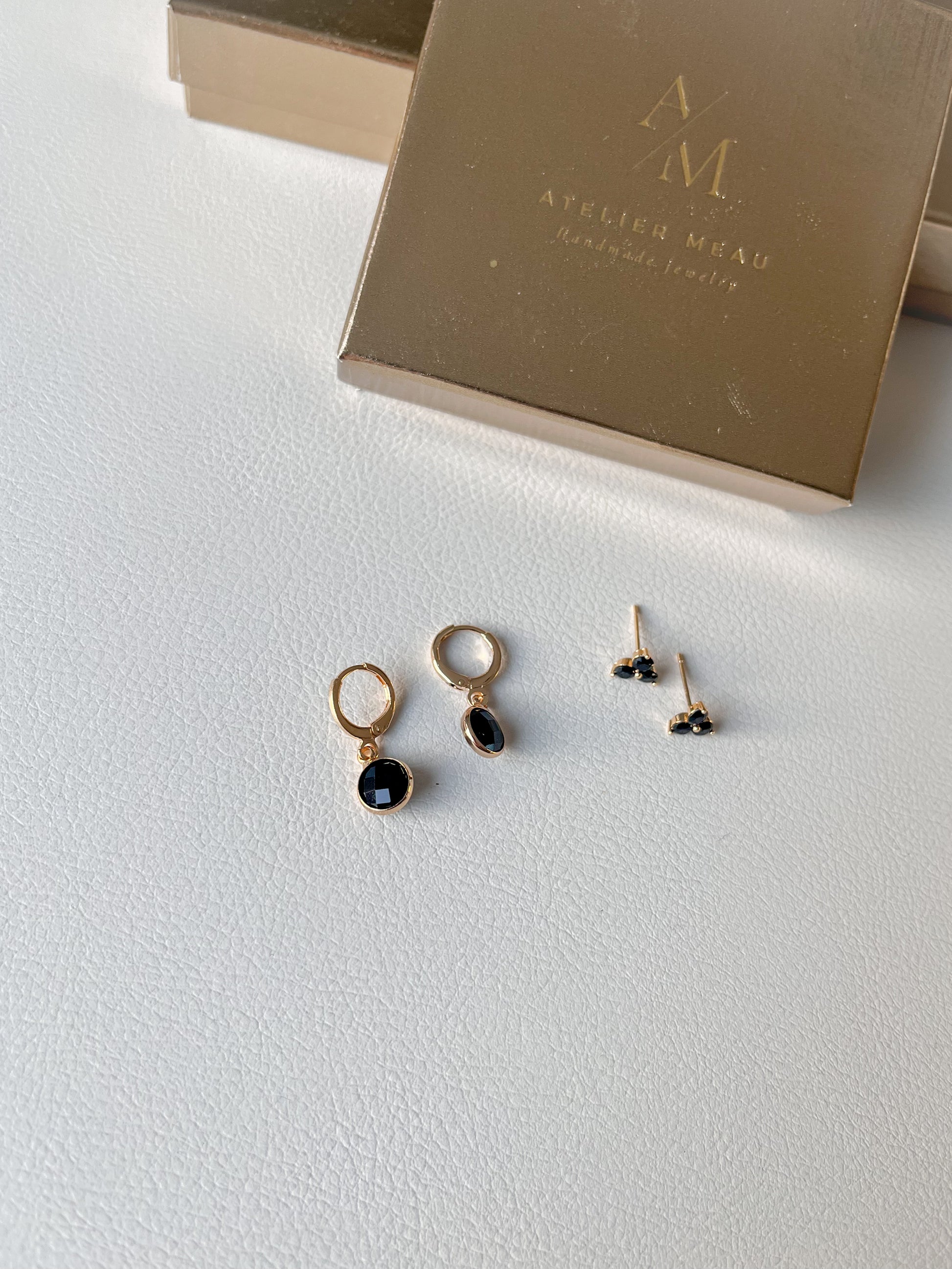 De Mini Kerstbox Midnight Glow bevat twee elegante oorbelletjes: een subtiele stud en een sprankelende huggie — perfect om elke feestlook te laten schitteren.