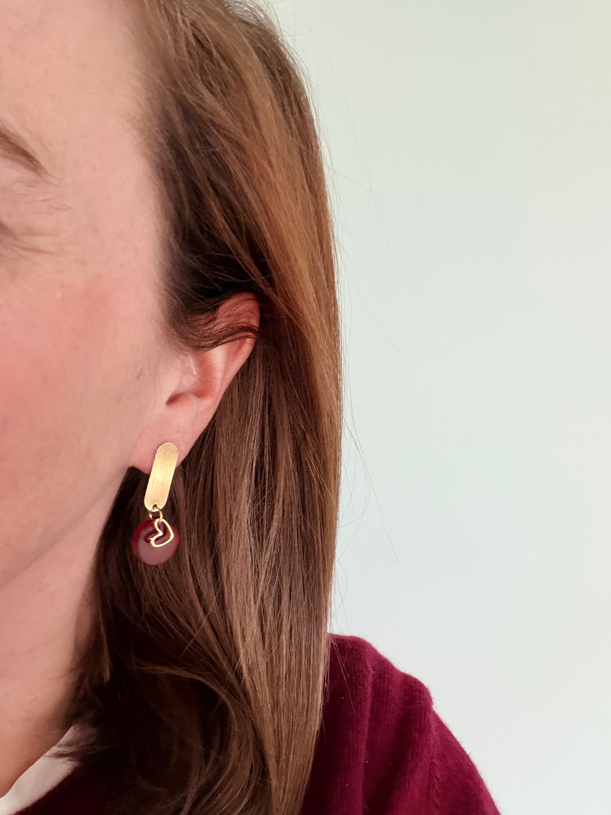Elk juweel is handgemaakt in ons atelier. Bovendien zijn er natuurlijke materialen gebruikt. Vandaar kan elke oorbel lichtjes verschillen van de foto.